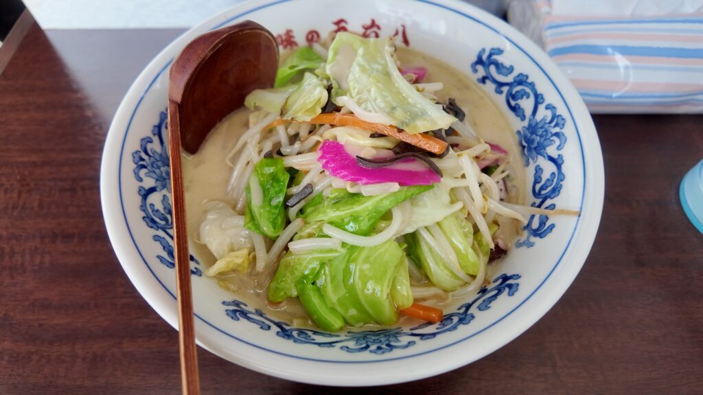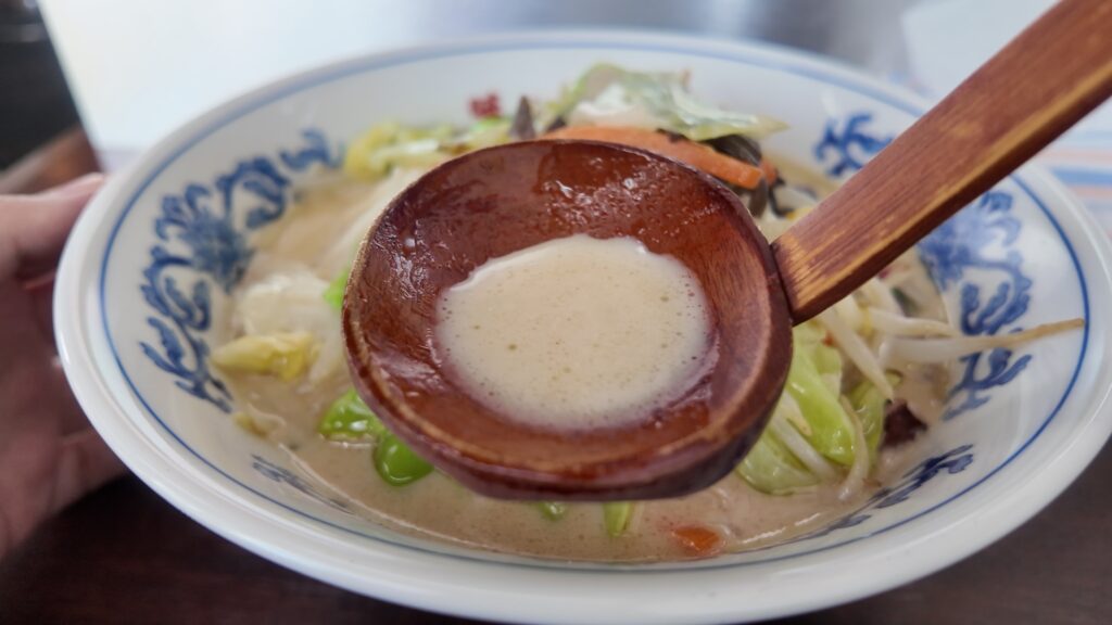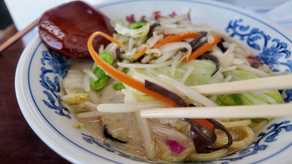 ちゃんタン麺はちゃんぽんとタン麺の中間の作り方で作られているのだそうです。