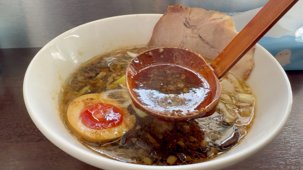玉ねぎの旨みとスープがうまく調和してスッキリと飲みやすく背脂のコクとパンチも効いていて美味しかったです。