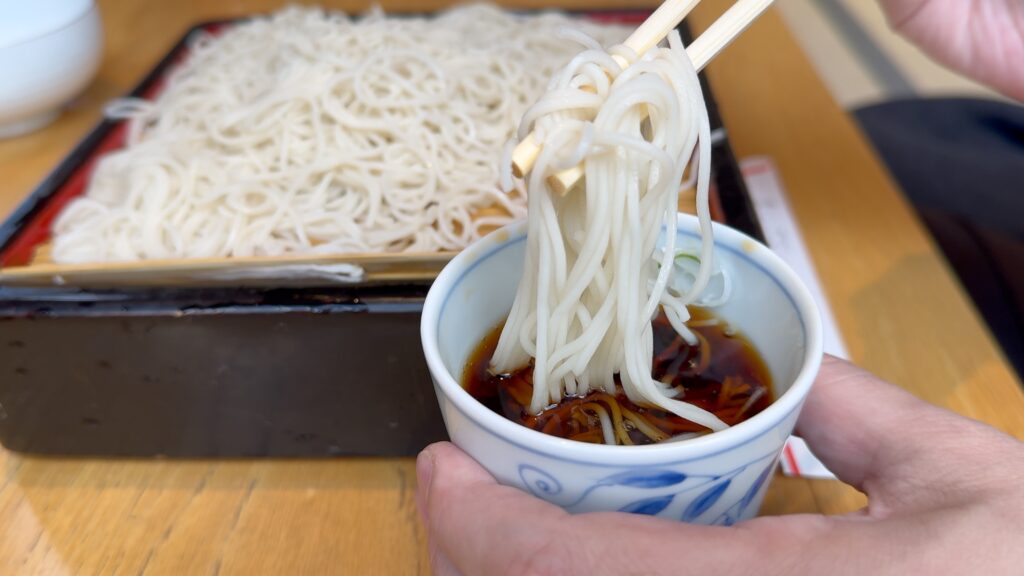 キリッとしていて出汁の効いたつゆがお蕎麦によく絡みます。