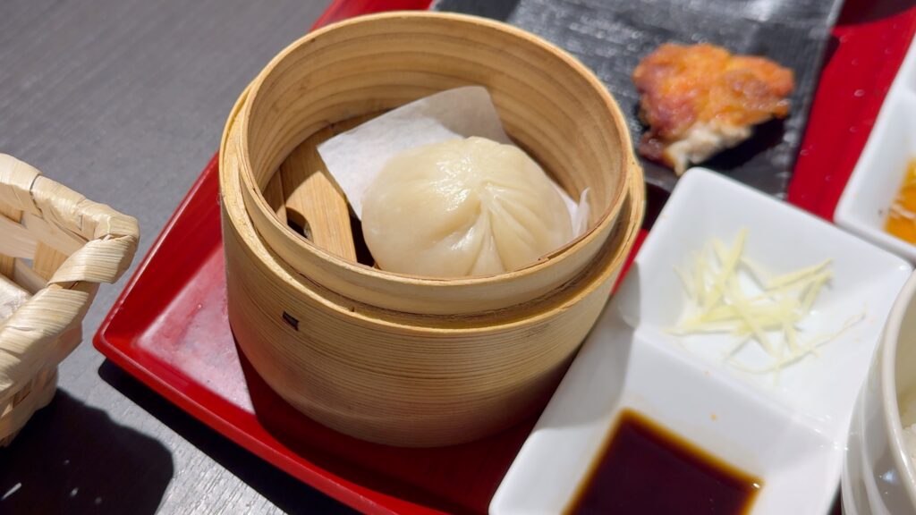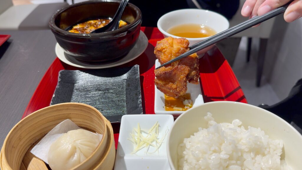 四川麻婆豆腐、布袋式ザンギ、手包み小籠包、中華スープにご飯とお漬物が付いたセットになります。