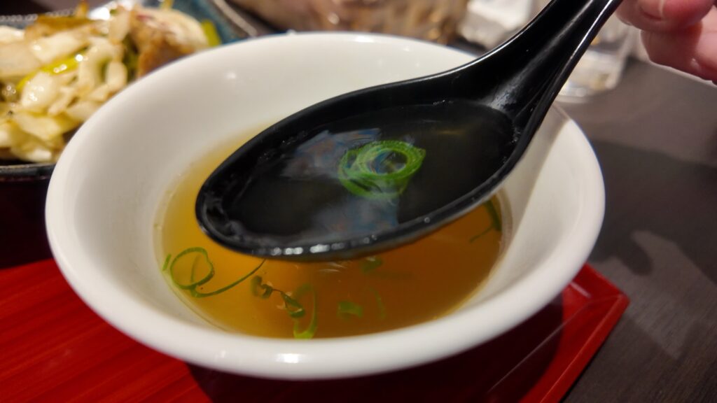四川麻婆豆腐丼、布袋式ザンギ、そして今週の料理長おすすめの逸品にお漬物と中華スープのついたセットになります。