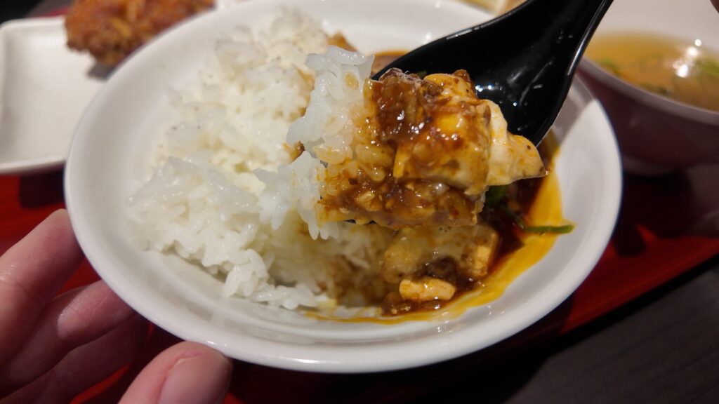 四川麻婆豆腐は弁財天さんの人気メニューの一つ。