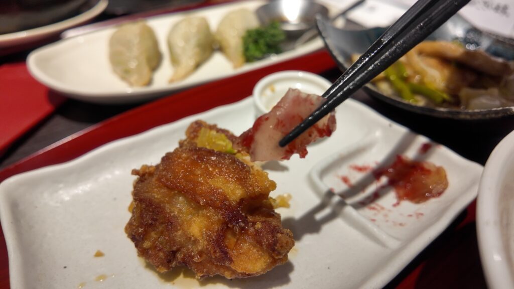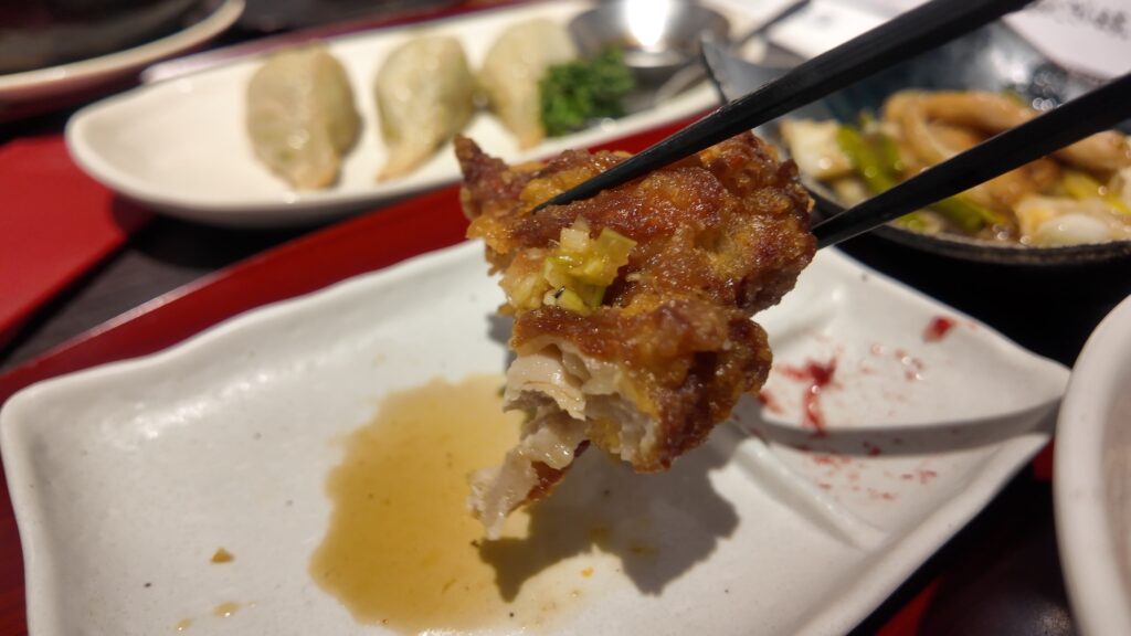 口の中で溢れる肉汁に黒酢と生姜のさっぱり感が合わさりとても美味しかったです。