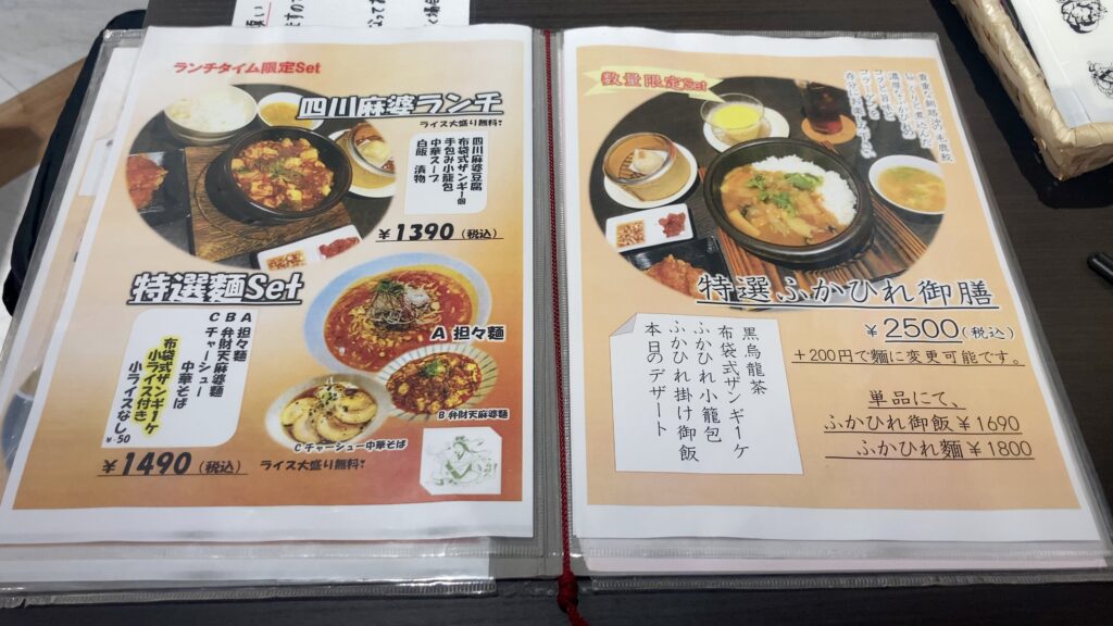 ご飯もののセット以外に担々麺や麻婆麺、チャーシュー中華そばとの特選麺セットなどもあります。