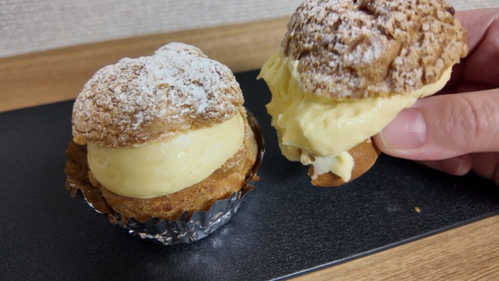 パクッと一口食べて驚きました、中には生クリームだけではなく、カスタードクリームと自家製のジャムも入っています。