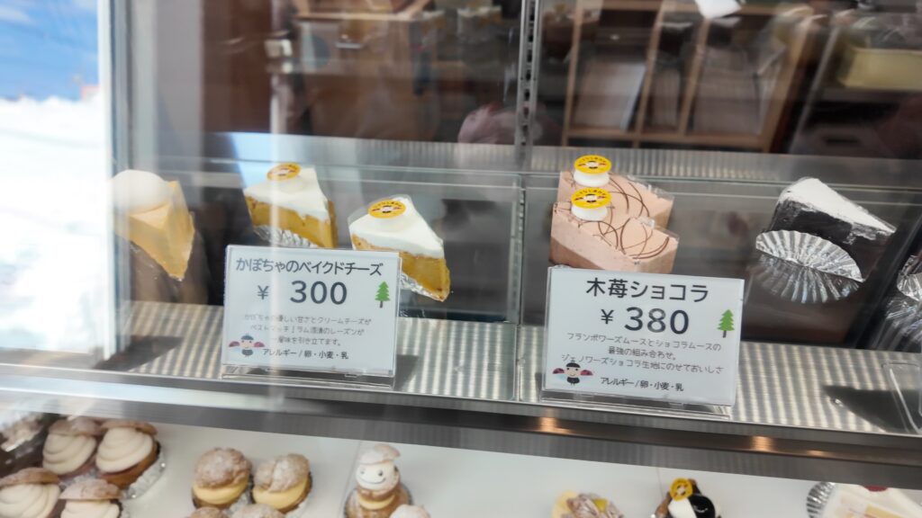 店内ショーケースには美味しそうなケーキがずらりと並んでいます。