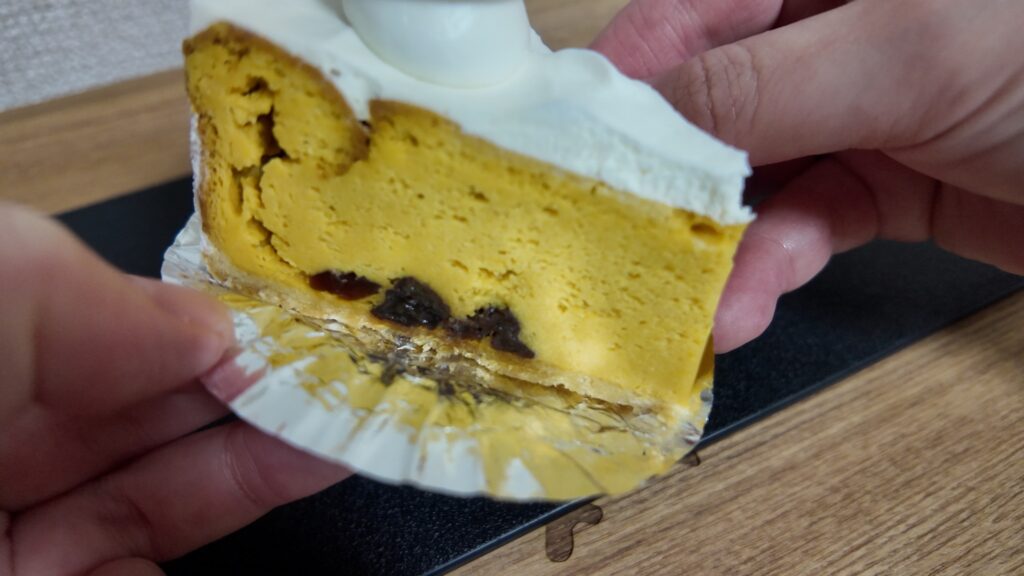 クリームチーズと滑らかで優しい甘さのかぼちゃ、底はパイ生地でしょうか?丁寧に作られているのが伝わってくるケーキです。
