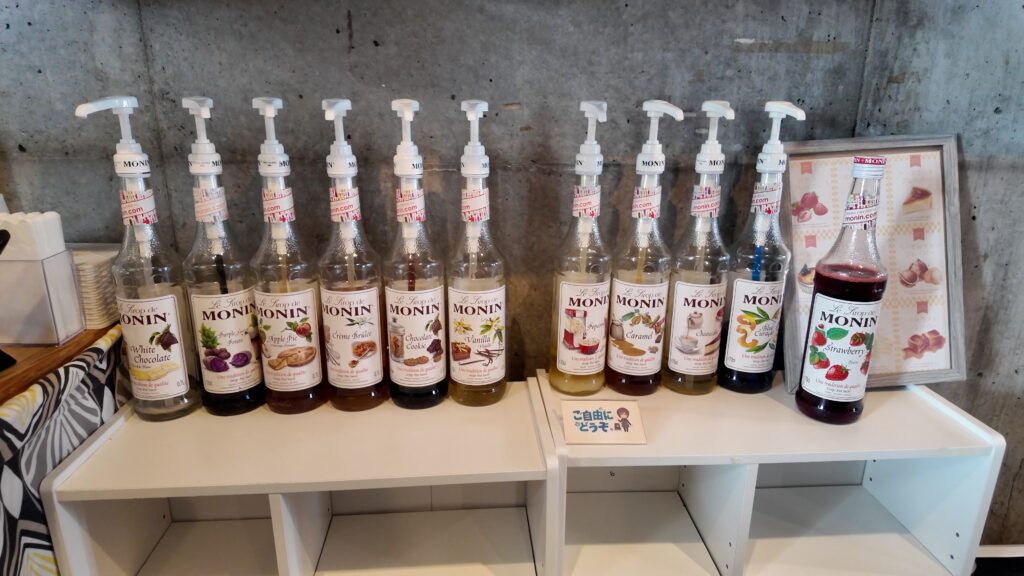 シロップの種類はその時によって異なると思いますが、この時はポップコーンやチーズケーキなど珍しいものもありました。