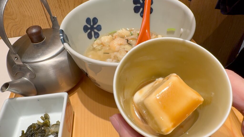 こちらのお豆腐、ごま醤油がかかっていてこのお醤油が非常に好みの味でした。