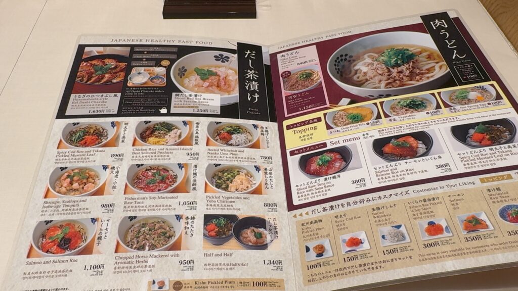 メニューは店名の通りに肉うどんとだし茶漬け。