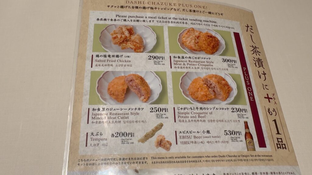 プラスもう一品で竜田揚げやコロッケ、天ぷらもあります。