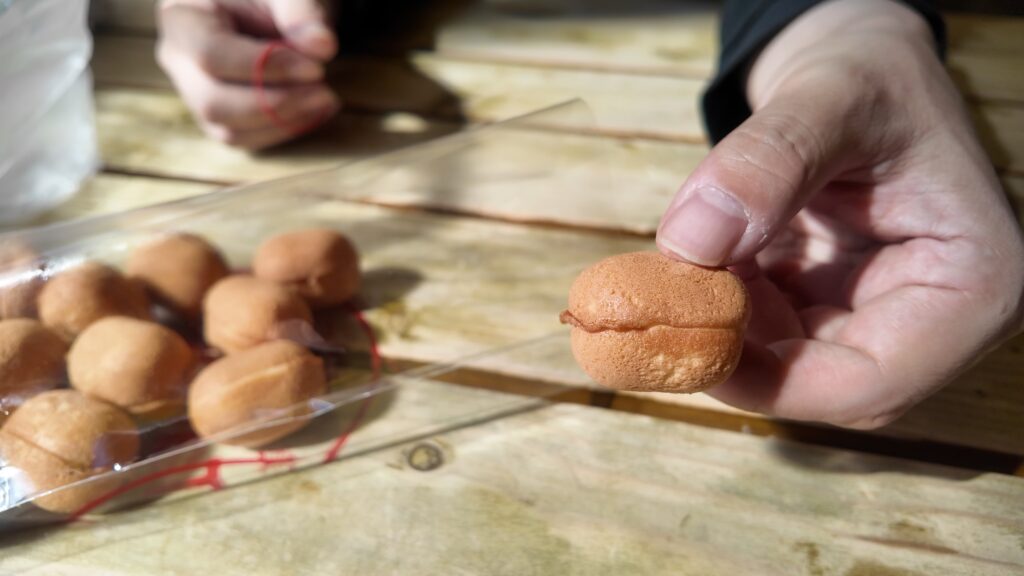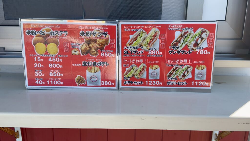 深川産の米粉を使用したザンギやベビーカステラなどが販売されています。