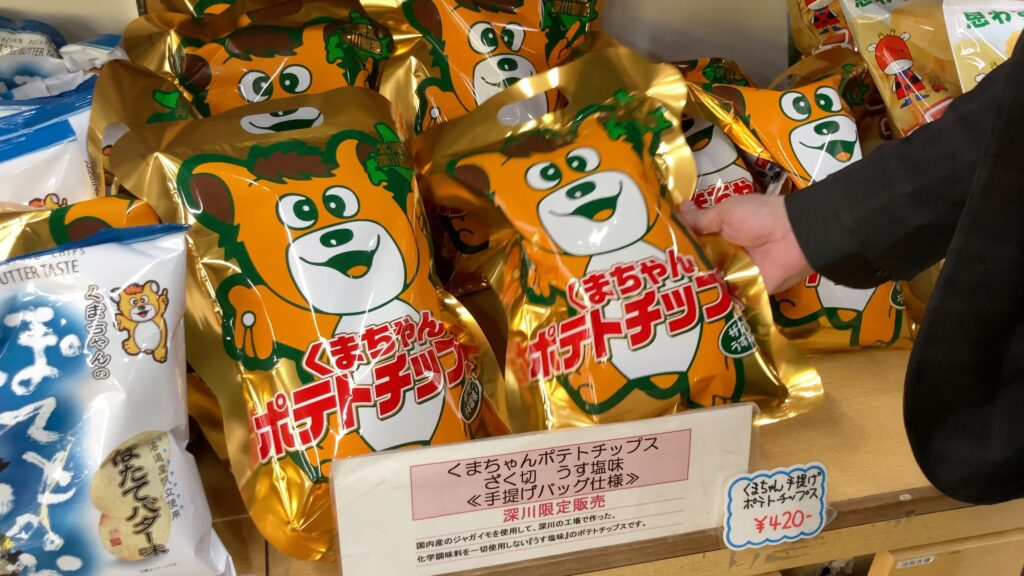マスコットキャラクターのくまちゃんが印象的な『くまちゃんポテトチップス』の「ざく切 うす塩味」