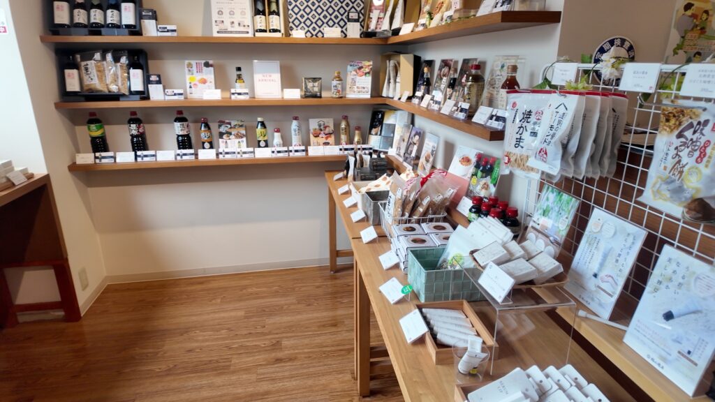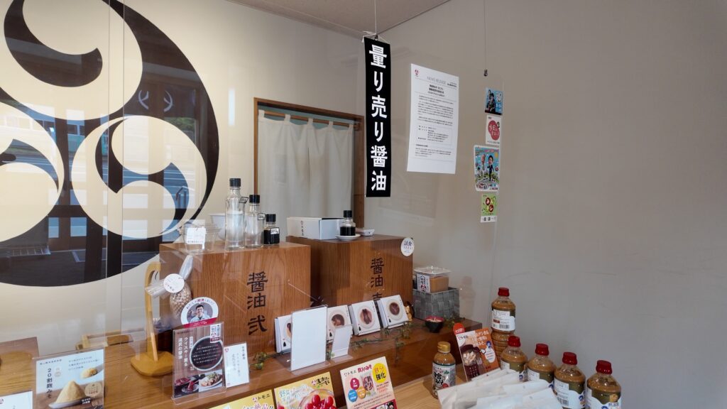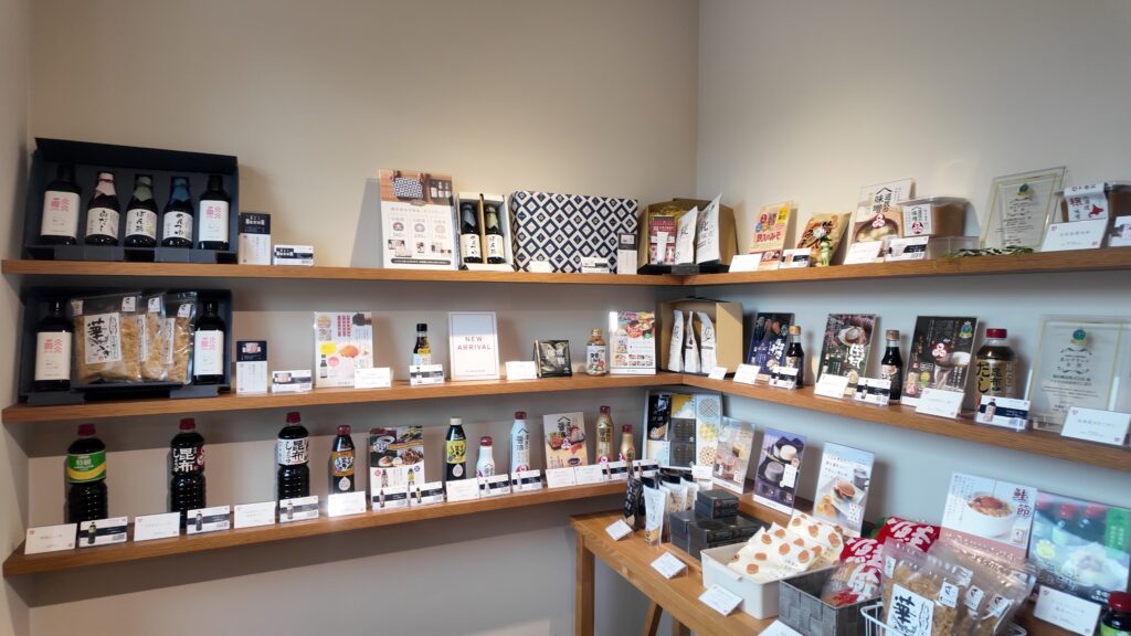 店内には数多くのお醤油やお味噌をはじめとした調味料が並んでいます。