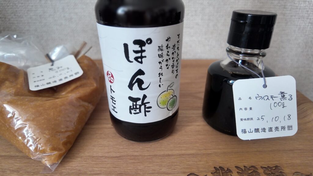 直売所では北海道では珍しい昔ながらの量り売りで工場直送のお醤油と非加熱の生味噌を購入することができます。