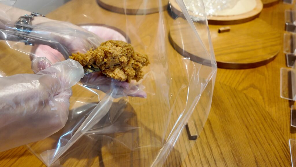 今回は米麹の割合が高い淡色系のつぶ味噌にしました。
