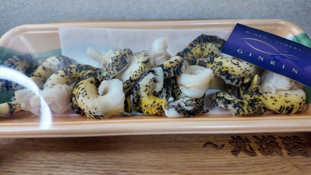 『やわらか煮つぶ』つぶは火を通すと固くなってしまいますが、銀鱗さん独自の製法でやわらかく仕上げられているのだそうです。