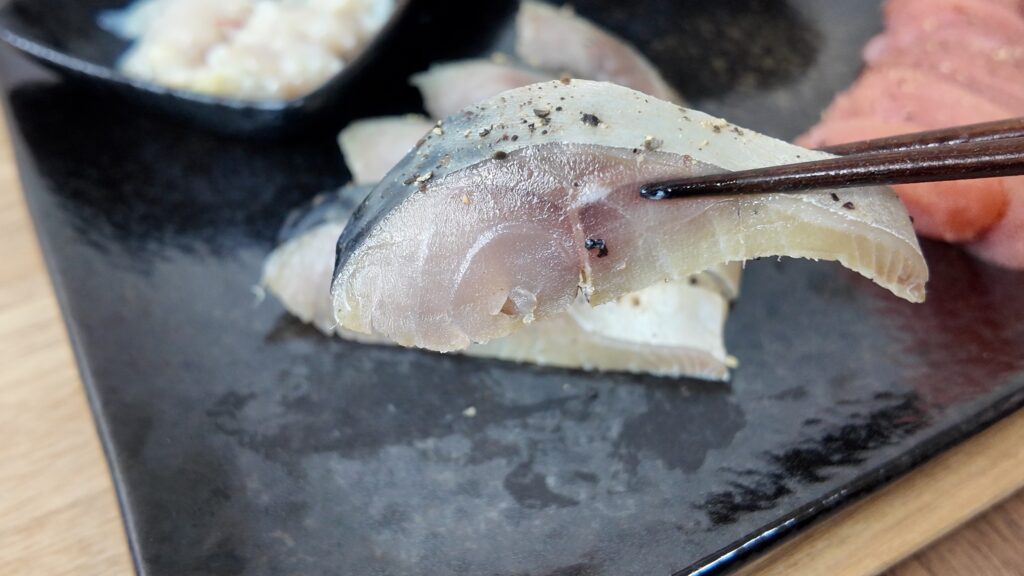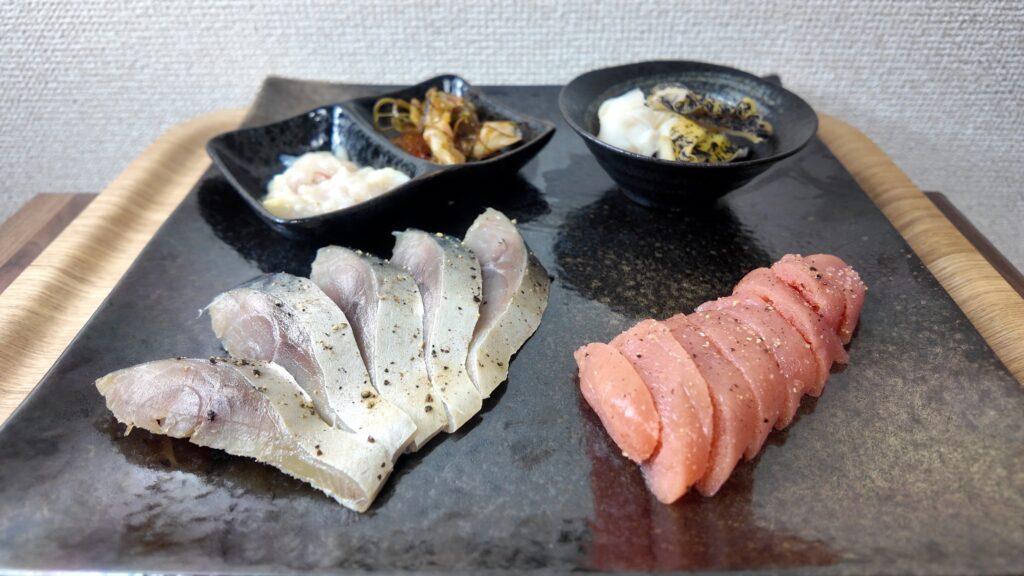 『燻製トロ鯖』は厚めに切ってみましたが、もう3〜4回楽しめるくらいの量がありました。