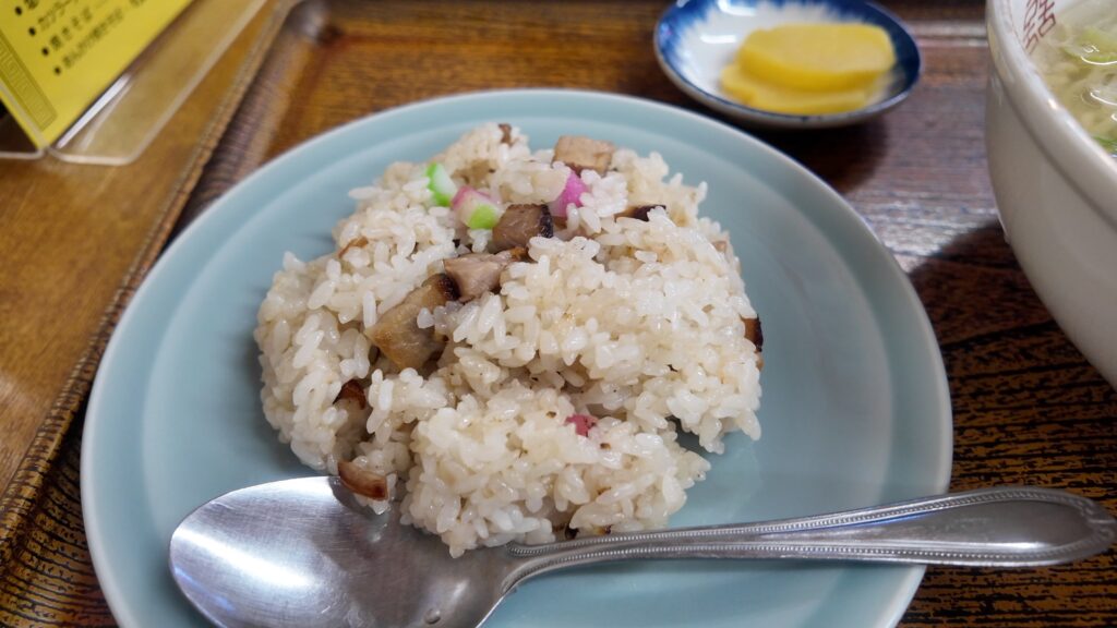 なるととゴロゴロとしたチャーシューが沢山入ったチャーハンはもちもちとした珍しいタイプでラーメンスープとの相性抜群。