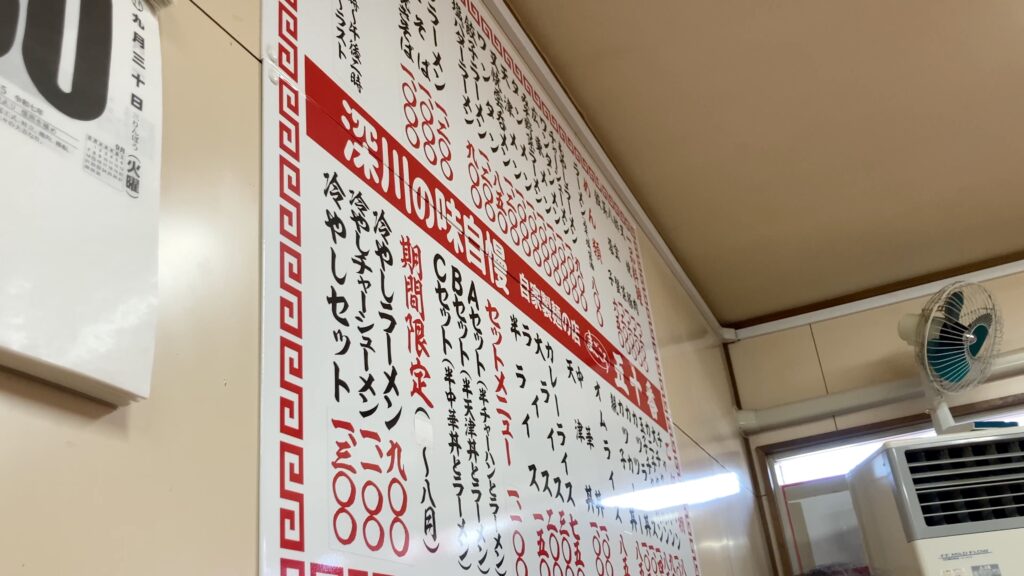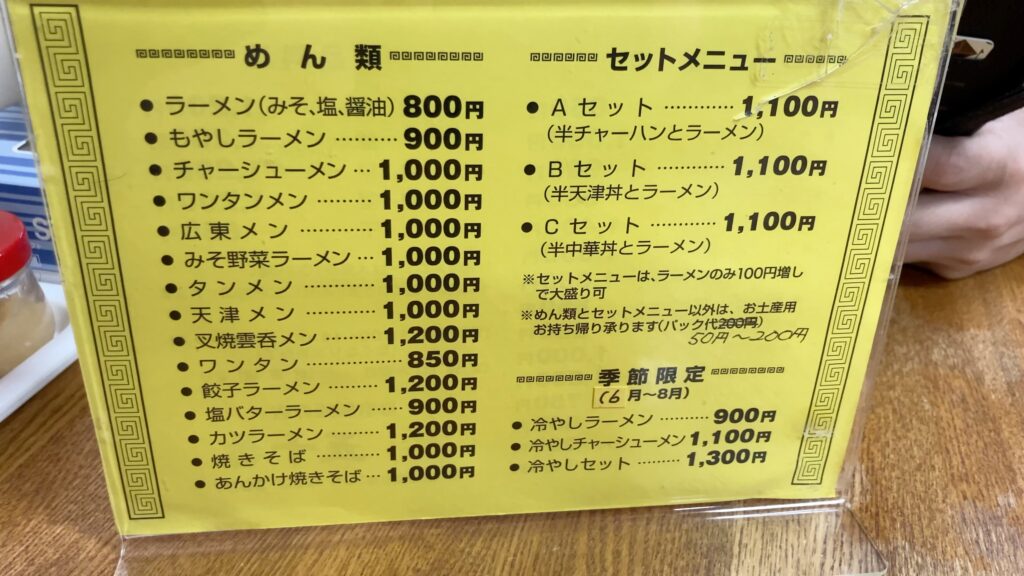 ラーメンはワンタンや広東メン、タンメンに天津メンなど種類豊富。