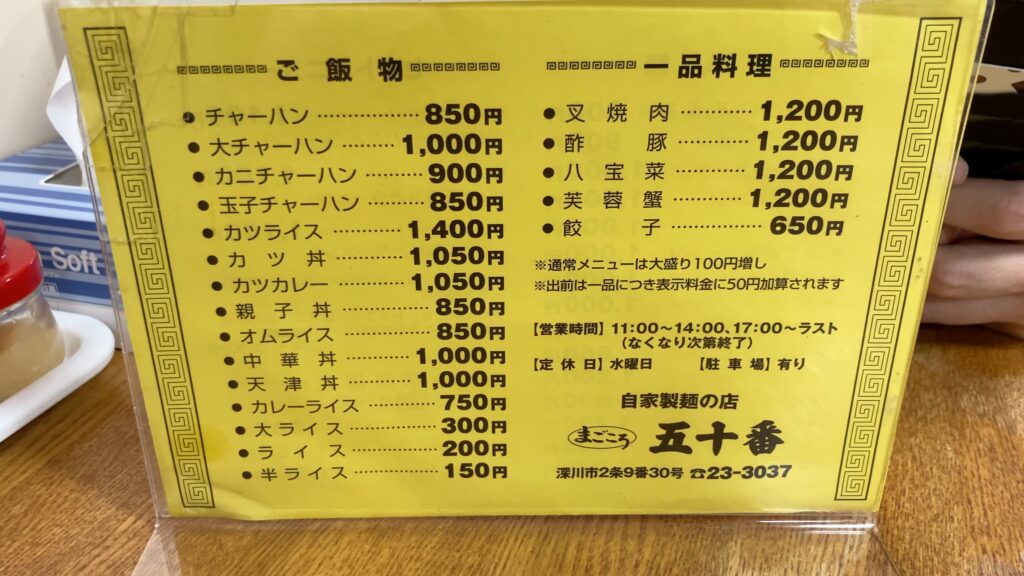 JR深川駅近くにある昭和38年創業のラーメン店『五十番』さん