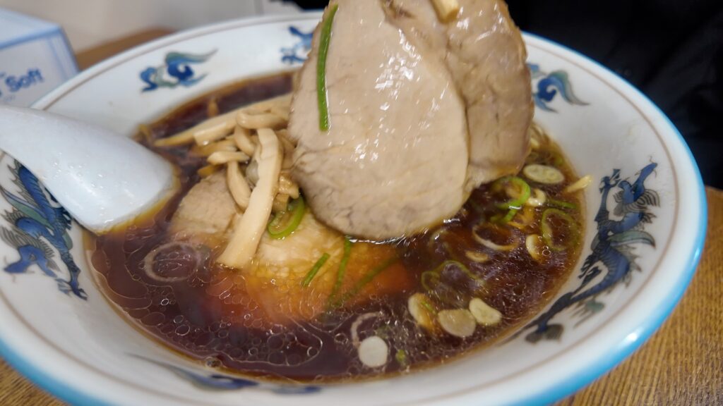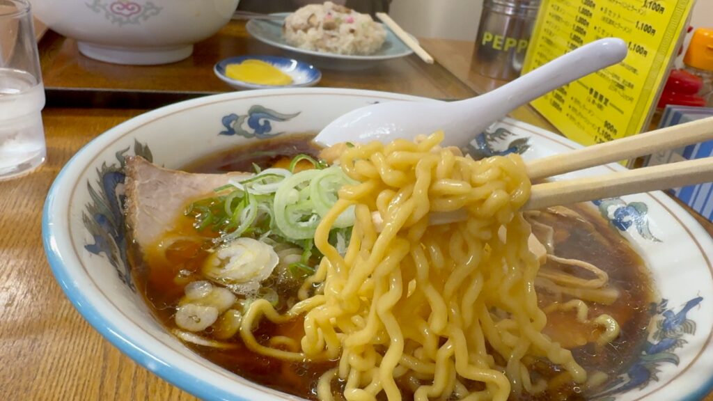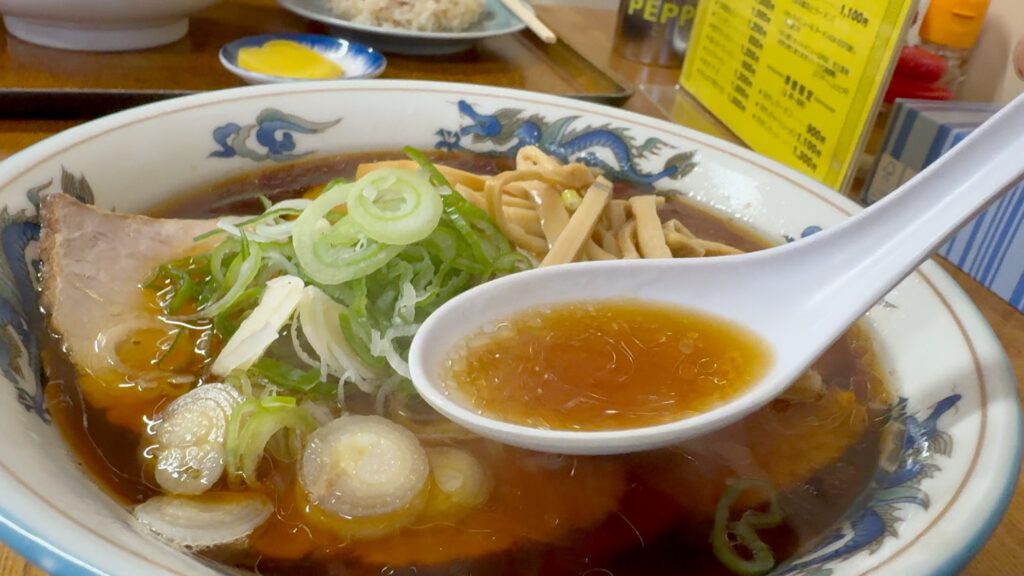 スープは濃いめの色をしていますが、ちょうど良い味の濃さ。