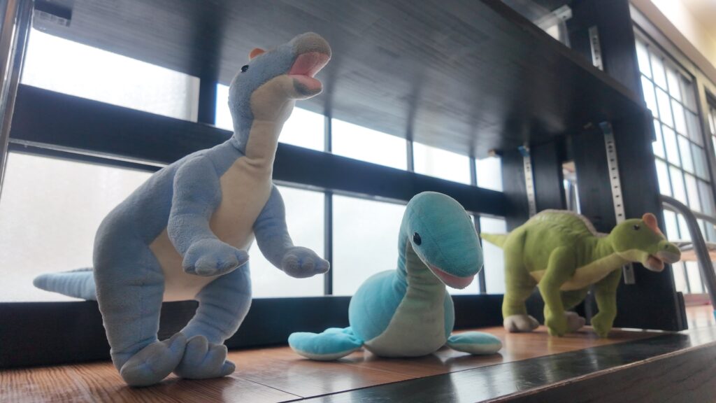 むかわ町ではあちこちで恐竜を見ることができますね。