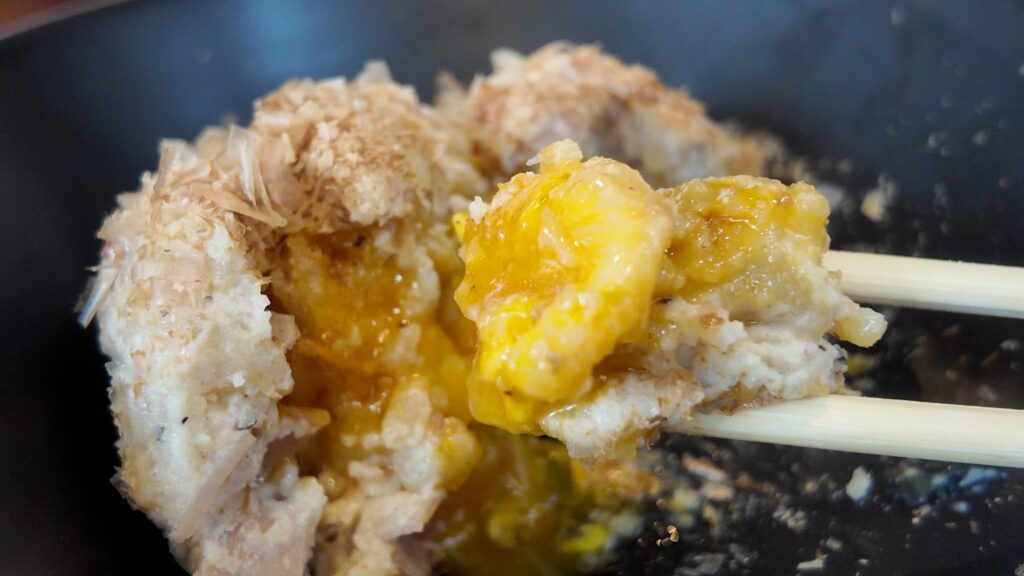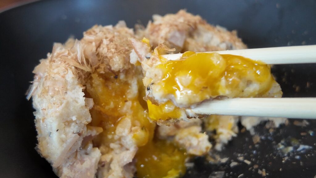 濃厚な卵黄のまろやかさと鰹節の風味も加わり、クセになる味でした。