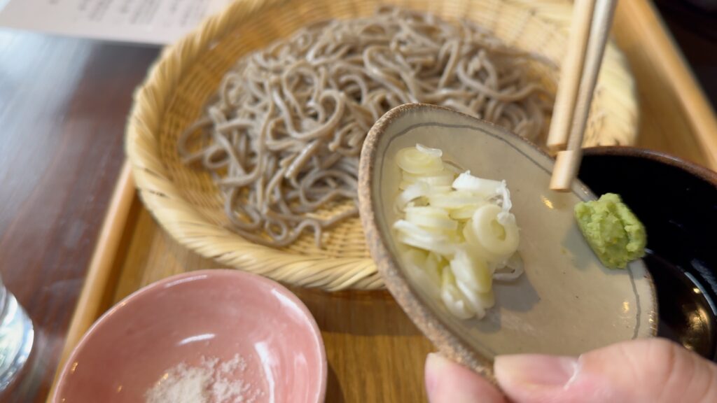 薬味にはネギとわさびも付いており、途中こちらも投入。