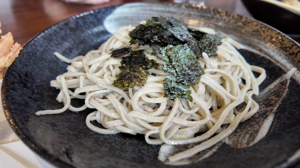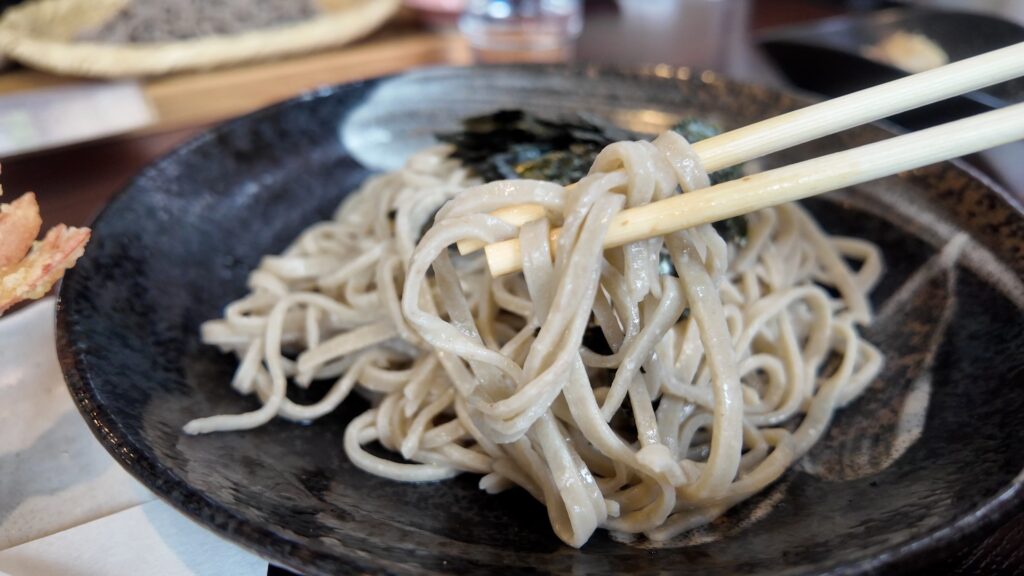 冷たくキリッとしたつゆと歯切れ良くコシのあるお蕎麦がよく合い、とても美味しいです。