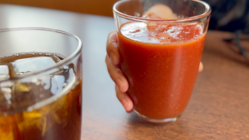 こちらのトマトジュースもびらとりトマトを使用されているそうで、味が濃く、トマトの自然な甘みが強くとても美味しかったです。
