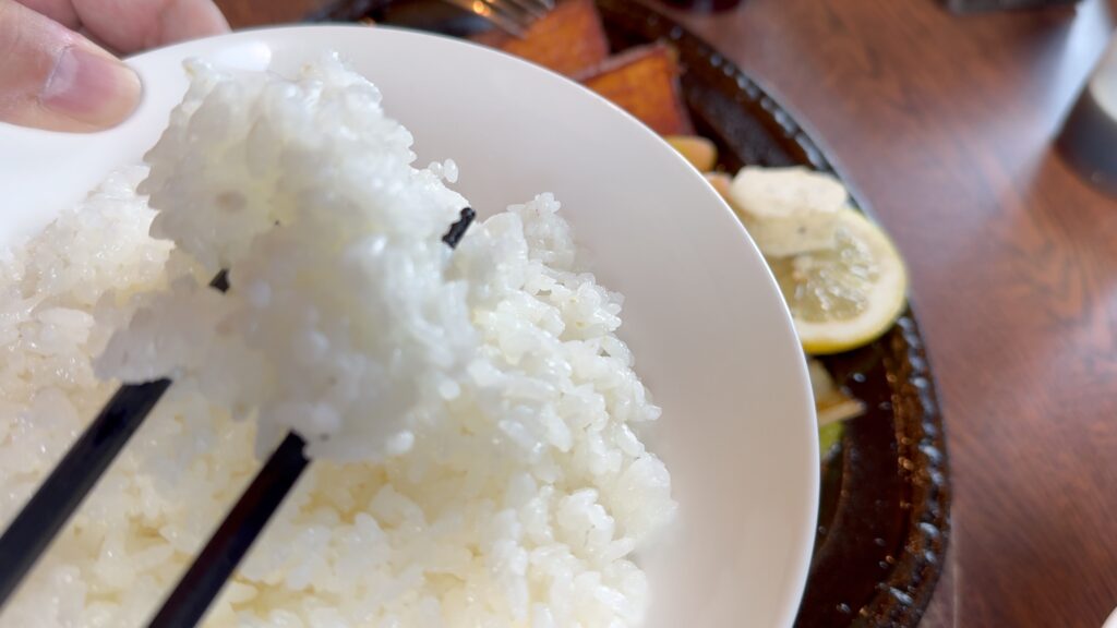 ご飯も平取産を使用されているそうで甘みがあり、お味噌汁も出汁が効いていて美味しかったです。