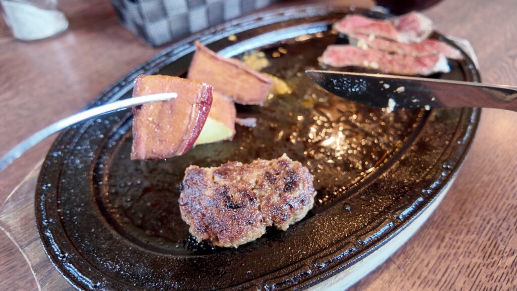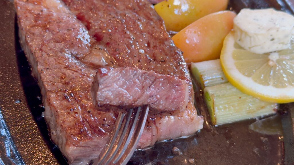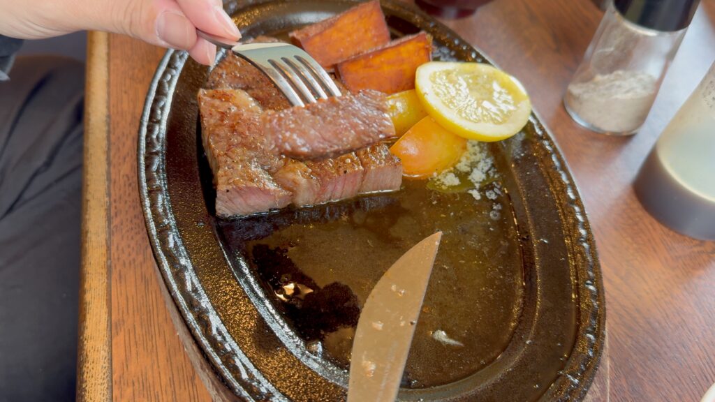 牛肉の味が濃く、旨みが凝縮されているような味わいで幾らでも食べられそうなステーキでした。