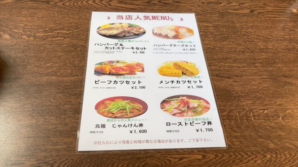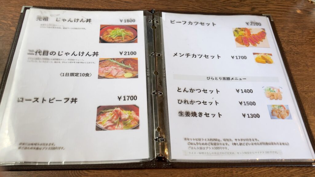 びらとり和牛を使用したステーキやハンバーグ、開店から人気というじゃんけん丼やビーフカツなど気になるものが沢山あります。
