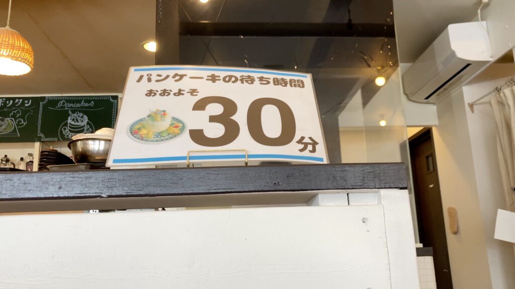 パンケーキのおおよその待ち時間が目で見て分かるようになっていました。