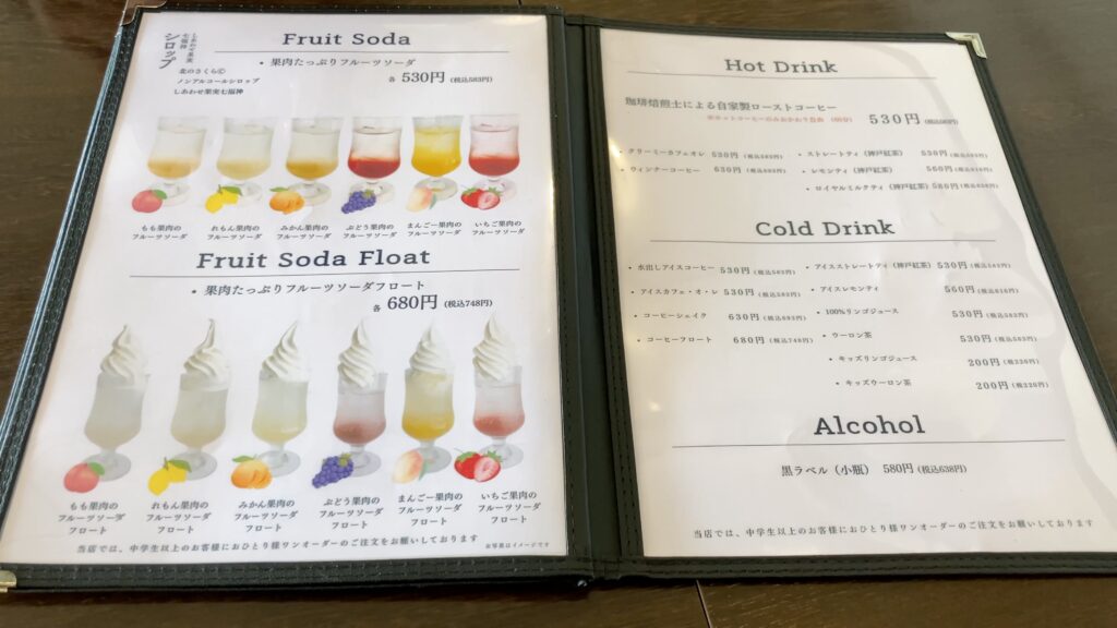 席に案内いただき、まずはメニューを開きます。