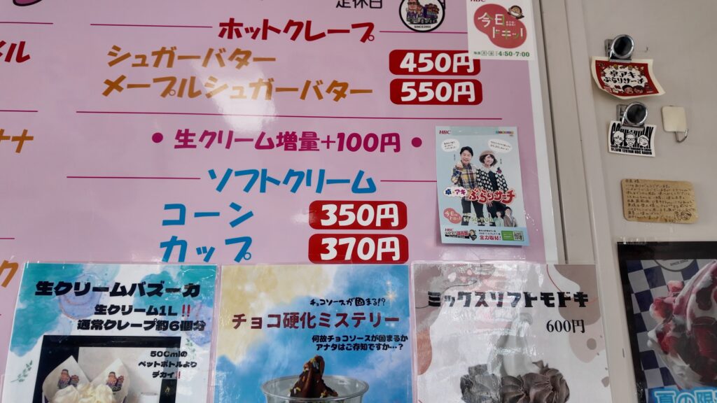 函館牛乳使用の牛乳ソフトともっちりクレープをいただけるお店です。
