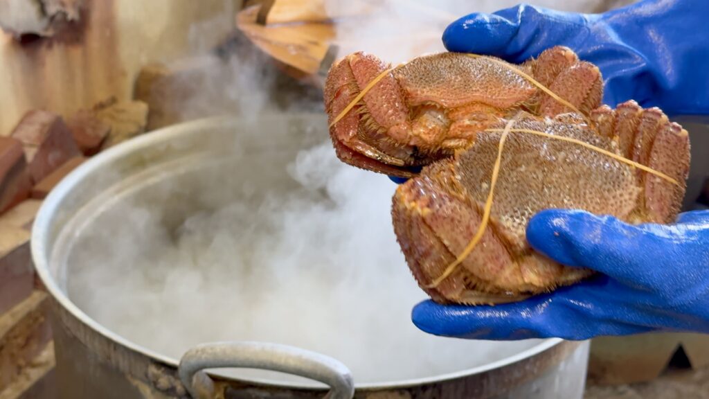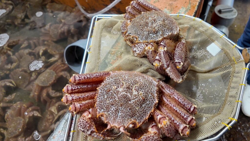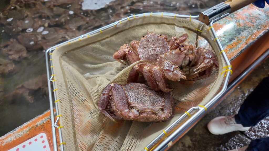 生簀から活毛蟹を選び、その場で釜茹でしたものをいただくことができるお店です。