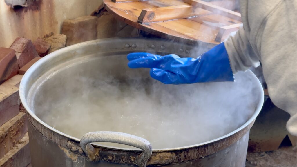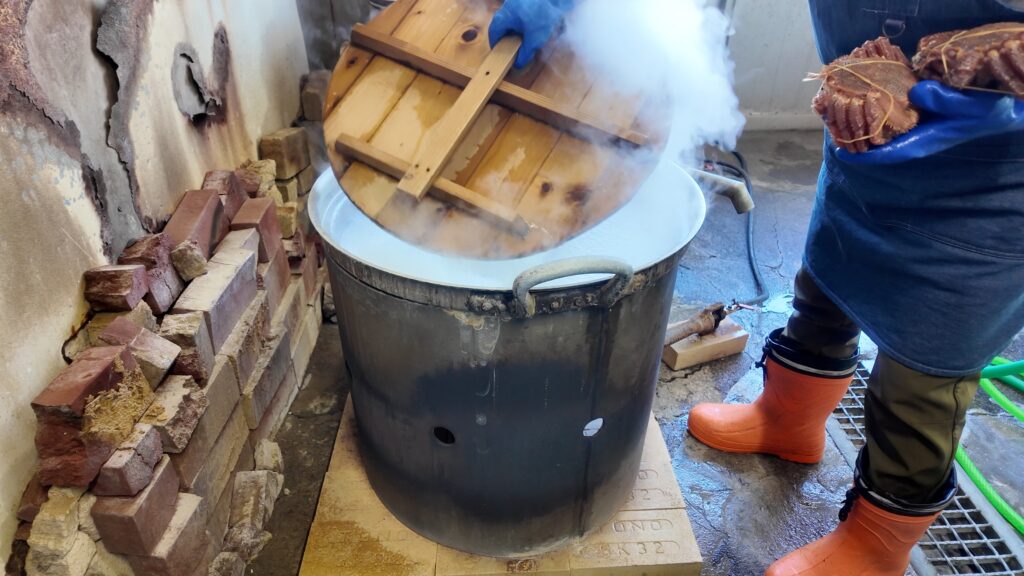 こちらの昔ながらの釜で茹でていただけるのだそうです。