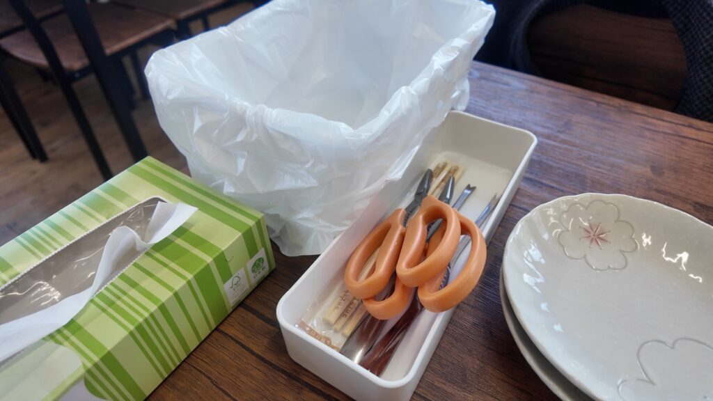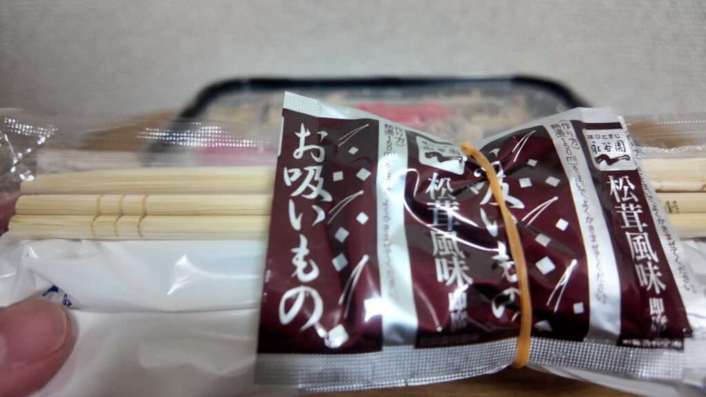 お箸、おしぼり、お吸い物付きになります。