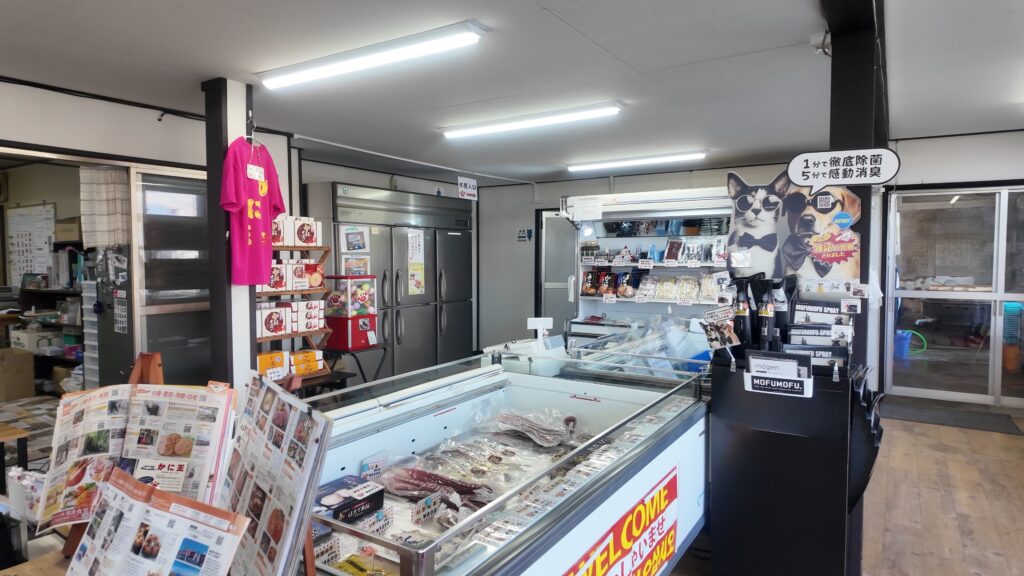 白老町にドライブにやって来たこの日、最初に訪れたのは、毛蟹をメインとした海産物の販売をされている『かに王』さん。