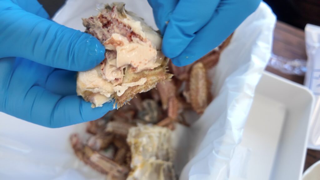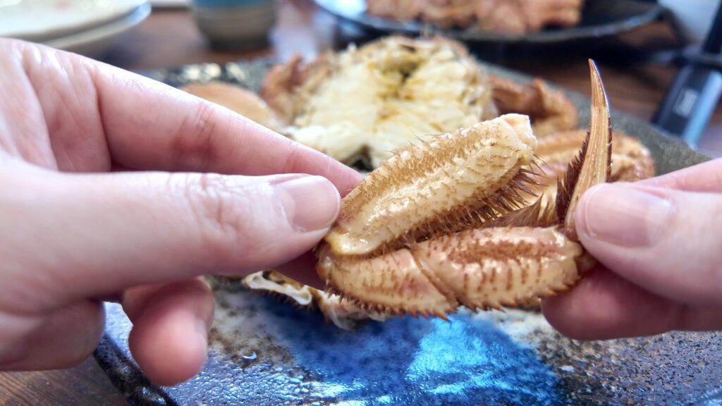 身を沢山食べたいのなら足が太い大きいサイズのもの、味噌が好きであれば小さいのが良いとのことで今回はチビ助をいただくことにします。
