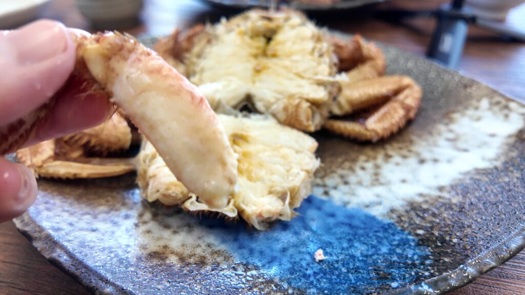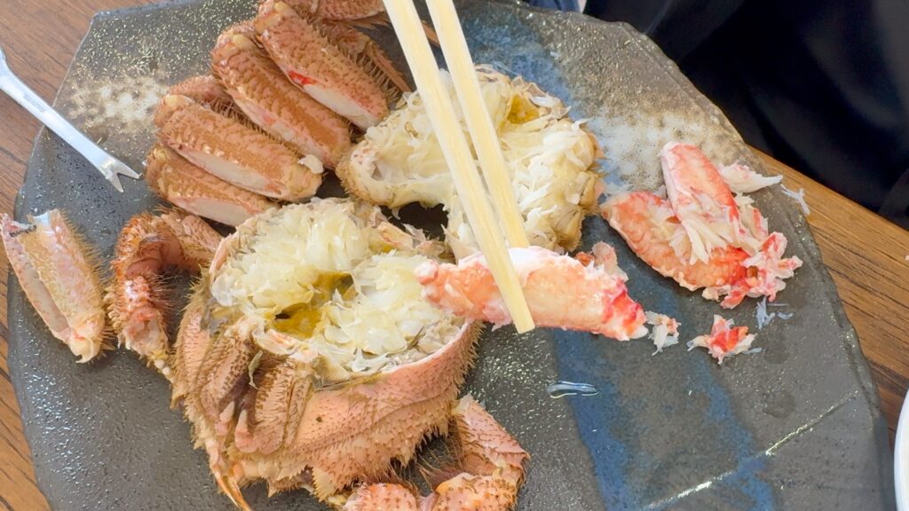私は足の綺麗に取れる部分はすぐに食べて、ほじくる部分はお皿に集めていきます。