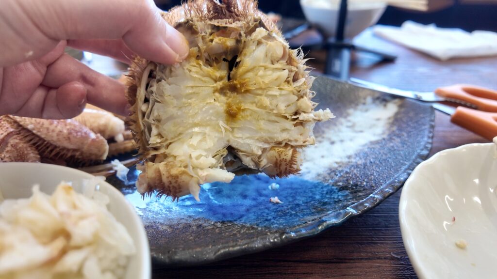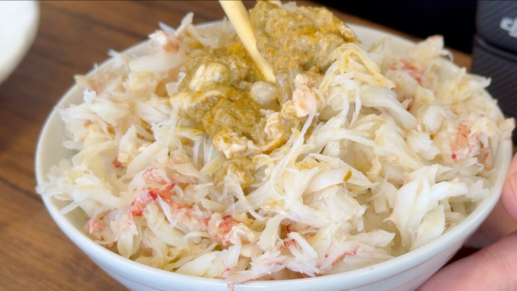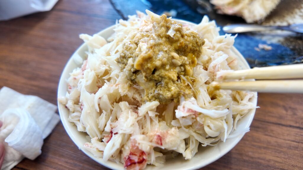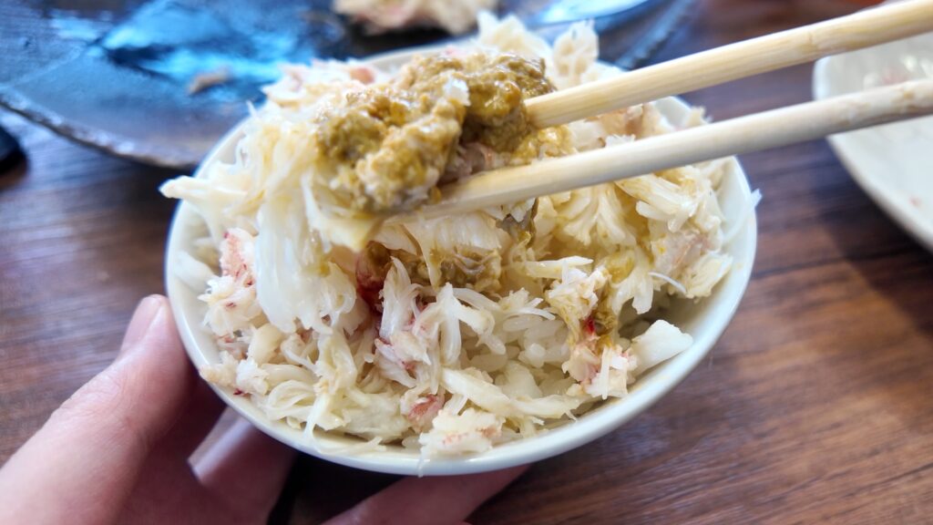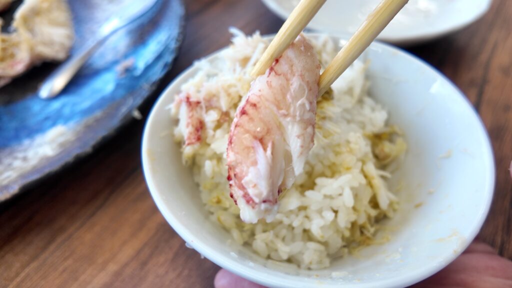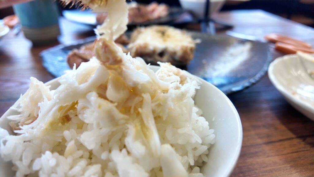 食事も終盤、これだけ乗せていてもまだ身があり、途中から蟹の身をおかずにかにめしを食べるという蟹に怒られそうな贅沢喰い。