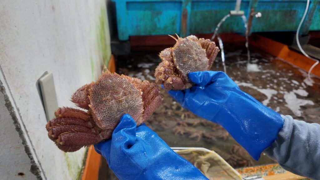 白老の虎杖浜での毛蟹漁は7月中旬〜8月中旬の約1ヶ月間で、身入りが良く、蟹味噌が濃厚なことで有名なのだそうです。