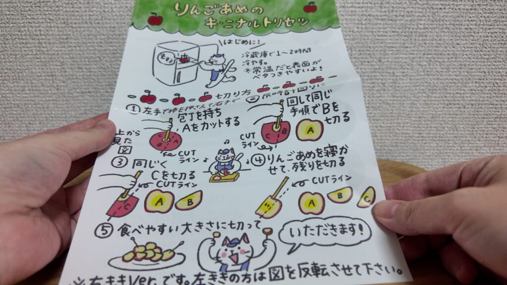 分かりやすく可愛いイラストの切り方の説明書もいただけたので、こちらを見ながらカットしていきます。