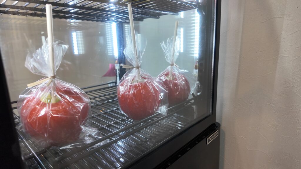 リンゴ飴と言えばお祭りの屋台のイメージが強く、記憶にある限りは食べたことがありませんでしたが、もし、同じような方がいらっしゃったら一回食べてみて欲しいくらい美味しかったです。