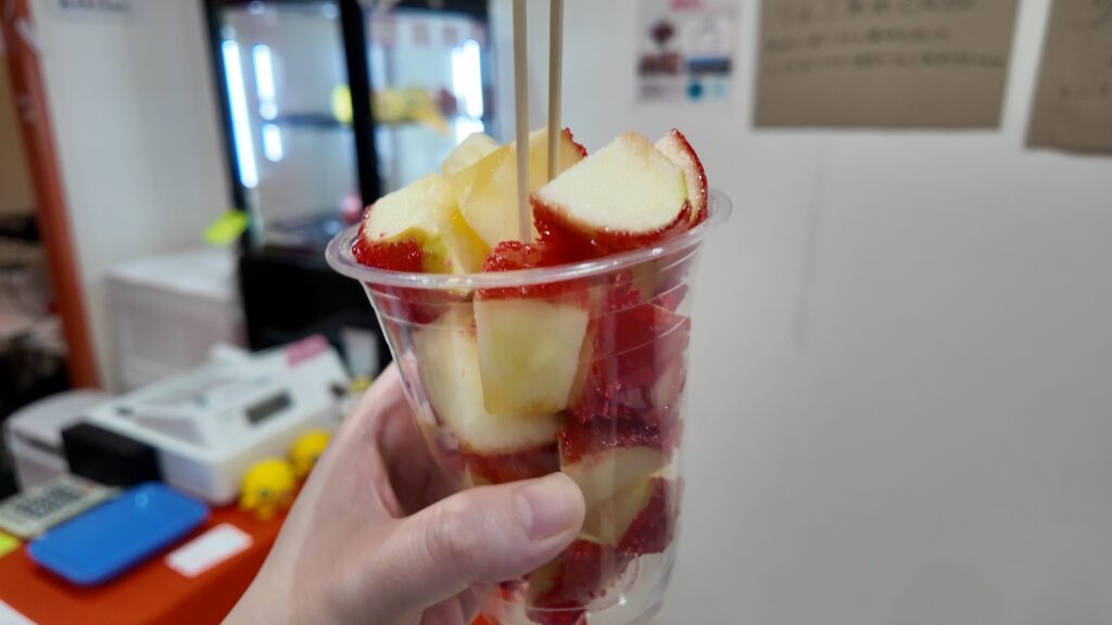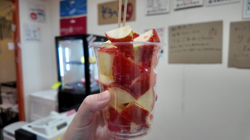 東苗穂にやって来たこの日、食事を食べて食後のデザートを食べに訪れたのはリンゴ飴の専門店