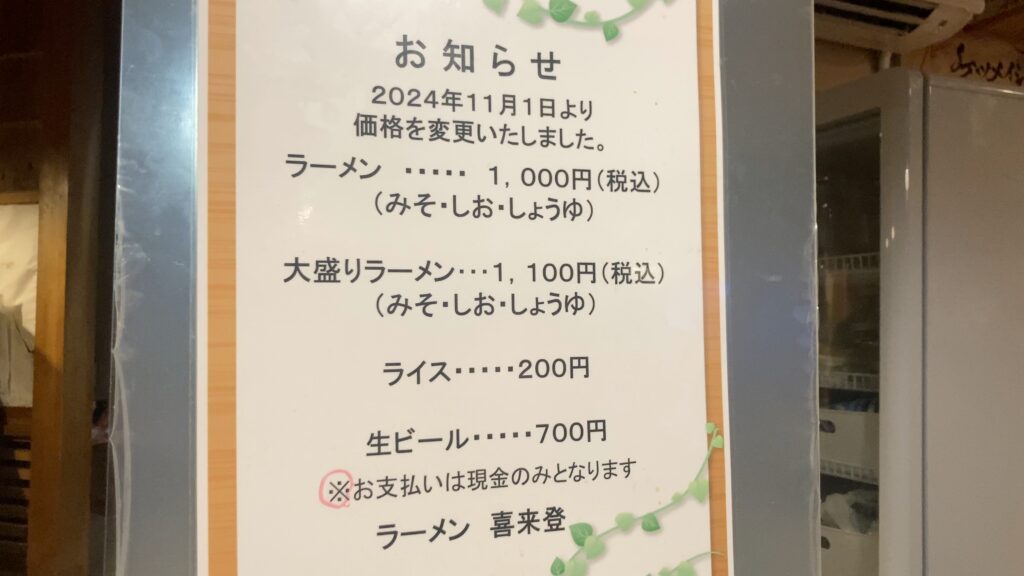 メニューはシンプルでみそ・しお・しょうゆとライスに生ビール。