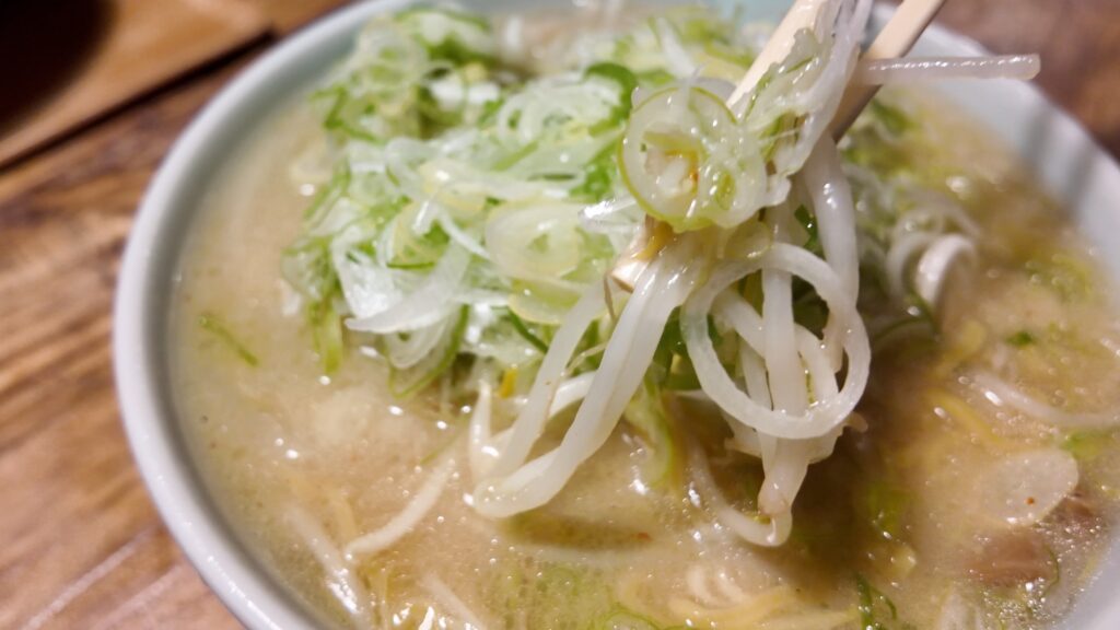 ネギはみそに比べると少し控えめですが、それでもデフォルトでこの量は凄いですよね。